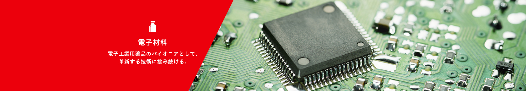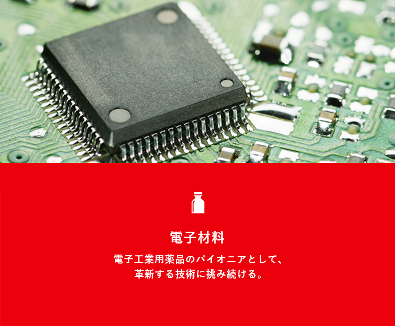 半導体デバイスの製造に欠かせない超高純度薬品や、特定の機能を持たせた機能性薬品などの電子工業用薬品を開発・製造し、電子機器メーカーに提供しています。